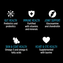 This food is enriched with prebiotics and probiotics to promote a healthy gut environment, ensuring optimal digestion and nutrient absorption. Omega-3 and omega-6 fatty acids help maintain healthy skin and a shiny coat. To support immune health, the formula is fortified with essential vitamins and minerals, providing an added layer of protection against common health concerns.