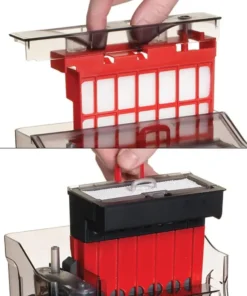 - Two Mechanical stages trap large and fine debris – foams easily slide out for quick cleaning