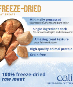 Catit Freeze Dried Food is a complete and balanced diet for cats. Catit Freeze-dried RAW offers your feline carnivore all the benefits of a pure raw meat diet, with minimal processing for maximum nutrition, packed clean in a bag for perfect convenience! Composed uniquely for cats, this complete and balanced daily diet consists of 90% meat from a single protein source, ideal for cats with allergies or food sensitivities. Our freeze-dried food range offers five irresistible, grain-free varieties, and can be fed straight from the bag or rehydrated to suit your cat’s preferences.