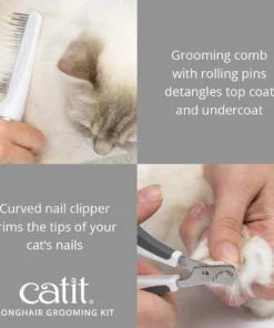 - The set contains every cat hair brush tool for daily grooming: pin cat brush, metal slicker cat brush, dematter tool, grooming comb with rolling pins and curved cat nail clipper