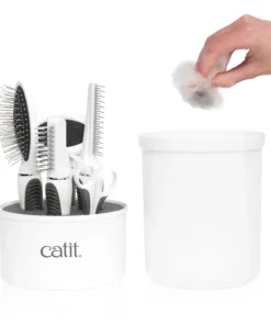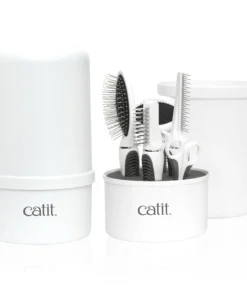 - The set contains all the brushes and tools for daily grooming: pin brush, metal slicker brush, dematter tool, grooming comb with rolling pins and curved nail clipper.