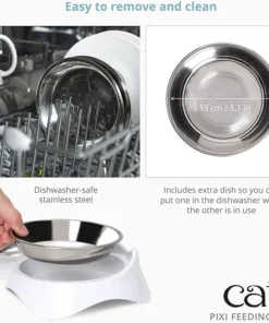 - Dishwasher-safe stainless steel dish is easy to remove and clean, an extra dish is included so you can put one in the dishwasher while the other is in use
