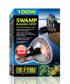 The Exo Terra Swamp Basking Spot is a splash and mist resistant basking spot lamp designed for use in aquatic or extremely humid terrarium set-ups, where high humidity or accidental water spillage could cause a regular basking lamp to burn out or shatter. The outer sleeve is made from extra-strong neodymium glass.