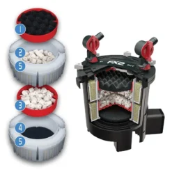 For aquariums with species that are strong feeders and fairly messy in nature (i.e. digging habits), we recommend using Fluval Fine-Filter pad and chemical media (i.e. carbon) at the bottom level, Fluval Bio-Max in the middle and Fluval Pre-filter rings at the top level.