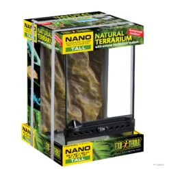 The all-glass Exo Terra® Natural Terrarium has dual front opening doors and a removable stainless steel screen top to allow easy access for cleaning, maintenance and feeding. The dual front opening doors come with a reliable locking-system to prevent unwanted or accidental opening to make sure your terrarium inhabitants remain safe and secure in their habitat.