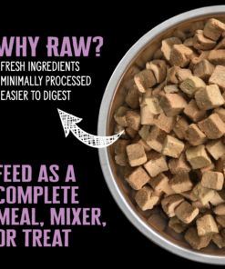Versatile and complete, this freeze-dried food serves as a balanced meal, delectable topper, or rewarding treat. Crafted in Canada with locally sourced ingredients, it embodies freshness and quality. Through the freeze-drying process, each ingredient’s nutritional value remains intact, ensuring optimal nourishment for your dog and making it the perfect nutritional boost for mealtime.