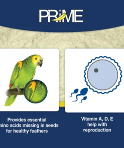 Prime is a full-spectrum vitamin, mineral, amino acid supplement for birds. It is the only bird food supplement specifically formulated for seed, vegetable and fruit-based diets.