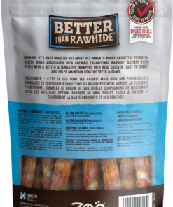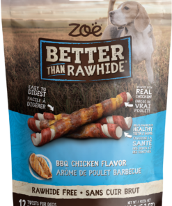 Chewing – It’s what dogs do. But many pet parents worry about the potential health risks associated with chewing traditional rawhide. Satisfy their natural instinct to chew with a better alternative: Zoë Better than Rawhide. Made with real chicken, easy to digest and helps maintain healthy gums and teeth. In three alluring flavours, BBQ Chicken, Peanut Butter and Mint, it’s soon to become their favourite treat.