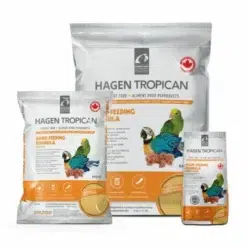 Tropican Hand-Feeding Formula provides proper daily nutrition for baby parrots up to fledgling, which is a critical age of a parrot’s life. Finely ground up extruded formula that is easy to mix, blends in seamlessly with hot water to create a smooth and consistent clump-free mash. This makes preparation quick and easy, improves feeding and enhances digestion. It’s an excellent peanut-derived source of fat and protein as well as a source of 8 essential grains that complement amino acid profiles; all critical to the proper growth and well-being of parrot chicks.
