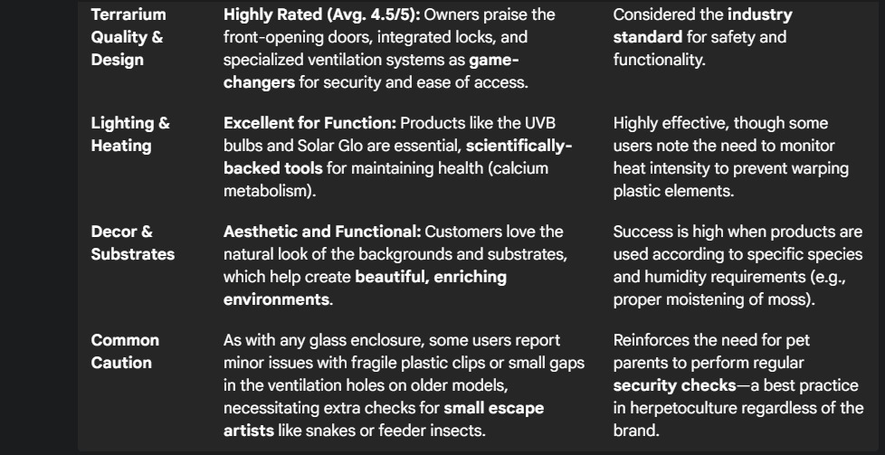 Exo Terra maintains a generally strong and loyal customer base, often earning high marks for its foundational products, despite some minor, common challenges associated with glass enclosures.